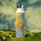 Colourful retro auto map of Cape Cod and the Massachusetts Coast repurposed on a water bottle.
