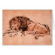 An extinct berber lion crouching,resting, re-elaboration from Dutch painter Rembrandt Van Rijn late 1640s.Classic monogram design on black background,pen and ink drawing in vibrant brown,sepia black colours with old brown parchment effects.