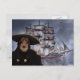 Another cute photo in the anthropomorphic postcard series: The Adventures of Ally, The Australian Kelpie dog. Here she is dressed as the Captain of a sailing ship, seen in the background. Photo by Louise Docker