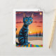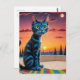 A tall skinny tabby cat sits on a colourful skateboard AI generated art