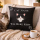 Add a personal touch to your home with this customizable “The Cat Was Here First” pillow. Designed with a modern, simple, and elegant typography style, it blends seamlessly into any space while showing off your cat’s personality.