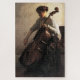This design features a painting by the American Impressionist artist Joseph DeCamp (1858–1923). It depicts a female cellist as she holds her musical instrument and plays a melody by drawing the bow across the strings. The woman is seated on the edge of a wooden chair as she plays the cello. Her posture is upright but graceful. The cello, which is also known as a violoncello, is a bowed string instrument of the violin family. Its four strings are usually tuned in perfect fifths: from low to high, C, G, D and A. The original artwork was painted by Joseph DeCamp in 1908.