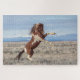 The young band stallion, Splaash, strikes a pose when confronted with a group of bachelor stallions getting too close to his mares.