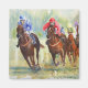 The leading horses round the bend in a thrilling National Hunt race, hooves pounding on the mud.