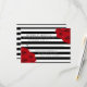 The chic modern luxe wedding collection features a classic black and white stripe background accentuated with beautiful ruby red roses.