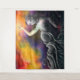 Original art by Lydia Holloway, The Choice depicts the figure of a woman, bound to the ground by grayscale vines as she reaches for the vibrant, colourful light above. Cracks form in her grey skin where the tendrils constrict her, but the light also permeates her, travelling through her to be returned to the very ground that restrains her.