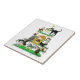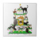 Original fine art design of cats on their kitty condo decorated for Christmas by artist Carolyn McFann printed on a quality ceramic tile for feline fans.