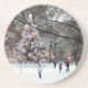 This coaster features a beautiful Christmas tree in the the middle of a field during a snowfall. A festive celebration of the season.
