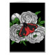 Hand drawn vector illustration of the cinnabar moth on a bouquet of peony flowers
