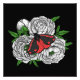 Hand drawn vector illustration of the cinnabar moth on a bouquet of peony flowers