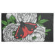 Hand drawn vector illustration of the cinnabar moth on a bouquet of peony flowers