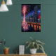New Year's Day in the city by the ocean and with firework in the sky. This is a AI generated art.