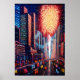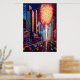 New Year's Day in the city by the ocean and with firework in the sky, a lot of cars on the highway in the city. This is a AI generated art.