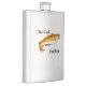 The product is a good size and came exactly as it was pictured. The lid is not attached to the flask, which could be dangerous on drunken nights... The print came out surprisingly well and looks very sharp. Would definitely recommend.