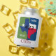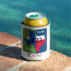 Can cooler designed for The Colony, Texas, Farm to Market road 423 and the iconic Texas longhorn. The Colony colours plus the state flag colours of red, white and blue.