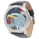 The Colourful All American Eagle with Flag Watch is perfect for anyone who wants to show their American pride. The watch has a patriotic American eagle and flag background, is also water-resistant, and has a leather strap.