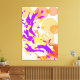 Here's a very unique and colourful abstract design to build your home or office decor around.  It features our abstract interpretation of "the conversation" featuring two abstract figures and colourful swatches and circles of orange, yellow, purple, and white both making up the figures and serving as the background.  Very cool and stylish stretched canvas print design - measures 24"x36".