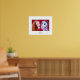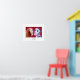 This poster features a whimsical couple--a woman and a skeleton--engaged in intimate conversation. It showcases the vibrant red background of the original watercolor, which contrasts dramatically with the cheerful skeleton's white bones and black shadows. It offers an unusual take on "true love" and Valentine's Day's passion.