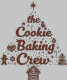 A charming “The Cookie Baking Crew” design shaped like a Christmas tree, filled with adorable baking-themed doodles—gingerbread cookies, snowflakes, candy canes, stars, and a cozy gingerbread house at the base.