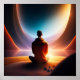 Beautiful and serene seated Buddha monk in a cosmic landscape. Digital art print created using AI generating software.
