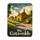 A serene and nostalgic depiction of the Cotswolds, an enchanting region in southwestern England known for its picturesque villages and rolling countryside. The design captures the region's charming stone cottages, lush green meadows, and scenic landscapes, with iconic features like honey-coloured stone buildings and quaint market towns such as Bourton-on-the-Water and Chipping Campden. Rendered in a vintage style, the artwork evokes the timeless charm and pastoral beauty of the Cotswolds, inviting viewers to experience its idyllic countryside and historical allure.