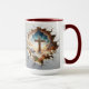 This inspirational coffee mug features a dramatic 3D-style design of a cracked wall revealing a radiant cross illuminated by a heavenly sky. Surrounded by clouds and blooming flowers, the image symbolises hope, faith, and resurrection. The deep red interior and handle beautifully complement the spiritual scene, making it a meaningful gift or daily reminder of faith.