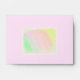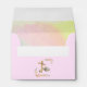 The front of the envelope is a rainbow pattern in colours of green, yellow, pink, red, purple and a white border. The back is designed with a cross in a beige crocheted pattern. Colourful buttons are added to the cross for coloration. A scroll and bible are also in this design. The flowers are used as a corner border. The inside of the envelope has the rainbow pattern. This envelope matches the The Cross & Bible invitation.