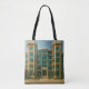 Tote bag of a modern citadel castle with crystal towers. A collection of exclusive housing for the very fortunate, the Citadel lies huddled up between buildings smaller and taller than itself, but always standing out by its distinctive look. This artwork was made with Microsoft's Copilot and then upscaled in Leonardo.ai. Of course, further editing was done by me.