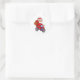 the cute santa claus is riding the bicycle and wav classic round sticker