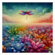 This vibrant painting captures a colourful dragonfly freely soaring over a meadow adorned with a sea of radiant flowers. Its delicate wings carry it gracefully through the blossoms, adding splashes of brilliant hues to the scenery, creating a dreamlike portrayal of freedom and vitality.