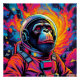 A chimpanzee dressed as an astronaut gazes thoughtfully into space.