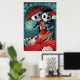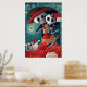 Piece of Day of The Dead art with Couple of Skeletons in love. During Mexican holiday of Dia de Los Muertos, everyone celebrate - there is lots of dancing and singing. These skeletons are in the middle of their passionate dance, among flowers and sugar skulls under the shining moon. For them is also lovers day. This romantic Dia de Los Muertos artwork is perfect gift for lover.