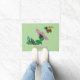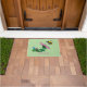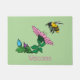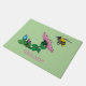 Two small flower bud sprites huddle together behind their mother as a large bee looms near. The parent flower sprite guards the little ones by presenting her fully bloomed flower to the insect.