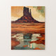 This modern art jigsaw puzzle features an abstract rugged desert landscape in deep burnt red, orange, brown, teal, cream, and black. At the center rises a bold rocky butte reminiscent of the American Southwest, set against a dramatic sky and reflected in stylized water below. The artwork blends contemporary minimalism with rich, expressive color, creating a visually engaging scene that’s both artistic and adventurous. With its modern aesthetic and vibrant palette, this puzzle offers a satisfying challenge for both kids and adults. It’s a great choice for family game night, a relaxing solo project, or a unique gift for anyone who loves desert scenery, abstract art, or colorful nature‑themed designs.