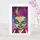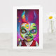 The Devil, From the Ricaso Nightmare Series. A colourful hideous creature, with rainbow horns, the Devil is wearing a shirt and has a small demon on his shoulder.