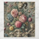 Beauty is no shield. The Devourer of Bloom & Bone erupts in lavish florals—blush roses, golden marigolds, and powder-blue clusters—only to be split open by something monstrous. Horned and snarling, grotesque faces leer between petals, while clawed creatures stalk the scrollwork, as if summoned by the scent of decay. Ornate, opulent, and unafraid to bite.