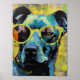 A beautiful dog wears yellow glasses with blue polka dots AI generated mixed media collage