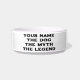 The dog myth legend funny custom pet bowl for food or water. Personalised bowl for dog lover. Available in medium and large size. Add your own name, funny quote, slogan or saying. Fun pet dish design for your animals. Black and white design with vintage typography.