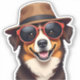 This delightful artwork captures the heart with a loveable dog donning oversized round sunglasses and a classic brown fedora. With a bright, beaming smile and expressive eyes peeking through the dark lenses, the pup exudes a playful charm and effortless cool.