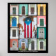 A colorful collection of doors found in Old San Juan, Puerto Rico. The doors in the middle are painted with the flag of Puerto Rico
