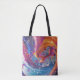A tote bag with a dynamite paint swirls with tiny flowers, gold stars and sparkles, the design was created digitally using a computer and special effects for this final result.