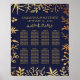 This seating chart, featuring a navy blue background with chic faux gold foil floral accents, is easy to personalize and will be the perfect table plan for any wedding, bridal shower, birthday party, engagement celebration or any other special occasion.