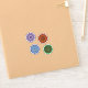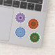 Water, fire, earth, and wind themed concentric circle mandalas come together in this colourful design. Each features a similar centre and outer layer with the others being appropriate to the element.