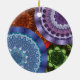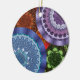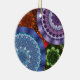 Water, fire, earth, and wind themed concentric circle mandalas come together in this colourful design. Each features a similar centre and outer layer with the others being appropriate to the element.