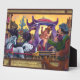 The Emperor’s New Clothes Original Fairy Tale Art painted by our talented children’s illustrator, Traci Van Wagoner, shows the Emperor parading through town in all his new suit glory (with a curtain strategically covering his private parts) in his carriage being pulled by two beautiful horses, one black and one white. A man and his son and dog watch from outside the decorative frame with the boy pointing out that the Emperor has nothing on at all. Anyone who loves fantasy and fairy tales will love this artwork.