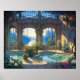 A hidden conservatory filled with lush greenery and soft, golden light opens onto tranquil waters beyond. Graceful arches and glass panels frame a peaceful pool surrounded by blooming plants and winding vines, creating a serene and inviting retreat. The interplay of light, water, and foliage evokes a sense of quiet escape, where nature and architecture blend in a harmonious, dreamlike setting.