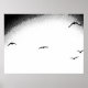 These birds (seagulls) are flying into the endless sky. Their black silhouettes against the white background coming the black really makes this photo unique.