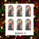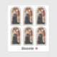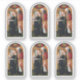 We do not recommend the 2"x2" size at all. Individual stickers would measure less than an inch in height. To avoid disappointment, measure your choice with a ruler on your screen. + In this early 15th-century arched panel painting by an anonymous French artist, the birth of the infant Jesus is imminent. Beneath a golden crown being lowered from heaven on high and supported by two bright red angels, another, a larger, smiling angel with multi-colored, upright wings and dressed in white, gently leads a gravid—that is, very pregnant—Virgin Mary to the place where she will deliver her babe, fulfilling the first part of God’s plan for the salvation of mankind. Mary, dressed in a dark blue robe and matching mantle, her head humbly bowed, meekly follows the angel’s lead. She is serenely calm and introspective. In the hand not held by the angel, she carries a medieval bag book, probably a book of Scripture. Two much smaller female figures wearing aprons follow after the BVM. They are neither angels nor children. They are "Emea" (the midwife") and Salome who attended Mary in the Nativity story as recounted in the apocryphal Gospel of James. Their small stature indicates their lesser importance in the scene. Behind an elaborately woven, waist-high tapestry hung as a privacy curtain, a fretful, elderly St. Joseph watches as his young wife is led away to give birth. + Image Credit: The Expectant Madonna with Saint Joseph, by an anonymous 15th-century French painter, c. 1425/1450, tempera on a European walnut panel. Dimensions (image): 27 3/4 × 13 3/4 in. (70.5 × 35 cm.); (with integral frame [not pictured here]): 32 11/16 × 19 × 2 3/4 in. (83 × 48.3 × 7 cm.). The Samuel H. Kress Collection, The National Gallery of Art, Washington DC, Accession Number: 1952.5.32. This image is in the public domain.