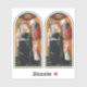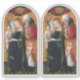 To avoid disappointment, always measure your choice with a ruler on your screen, especially when ordering small sizes. + In this early 15th-century arched panel painting by an anonymous French artist, the birth of the infant Jesus is imminent. Beneath a golden crown being lowered from heaven on high and supported by two bright red angels, another, a larger, smiling angel with multi-colored, upright wings and dressed in white, gently leads a gravid—that is, very pregnant—Virgin Mary to the place where she will deliver her babe, fulfilling the first part of God’s plan for the salvation of mankind. Mary, dressed in a dark blue robe and matching mantle, her head humbly bowed, meekly follows the angel’s lead. She is serenely calm and introspective. In the hand not held by the angel, she carries a medieval bag book, probably a book of Scripture. Two much smaller female figures wearing aprons follow after the BVM. They are neither angels nor children. They are "Emea" (the midwife") and Salome who attended Mary in the Nativity story as recounted in the apocryphal Gospel of James. Their small stature indicates their lesser importance in the scene. Behind an elaborately woven, waist-high tapestry hung as a privacy curtain, a fretful, elderly St. Joseph watches as his young wife is led away to give birth. + Image Credit: The Expectant Madonna with Saint Joseph, by an anonymous 15th-century French painter, c. 1425/1450, tempera on a European walnut panel. Dimensions (image): 27 3/4 × 13 3/4 in. (70.5 × 35 cm.); (with integral frame [not pictured here]): 32 11/16 × 19 × 2 3/4 in. (83 × 48.3 × 7 cm.). The Samuel H. Kress Collection, The National Gallery of Art, Washington DC, Accession Number: 1952.5.32. This image is in the public domain.