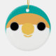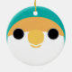 The face of a blue peach-faced lovebird ceramic tree decoration